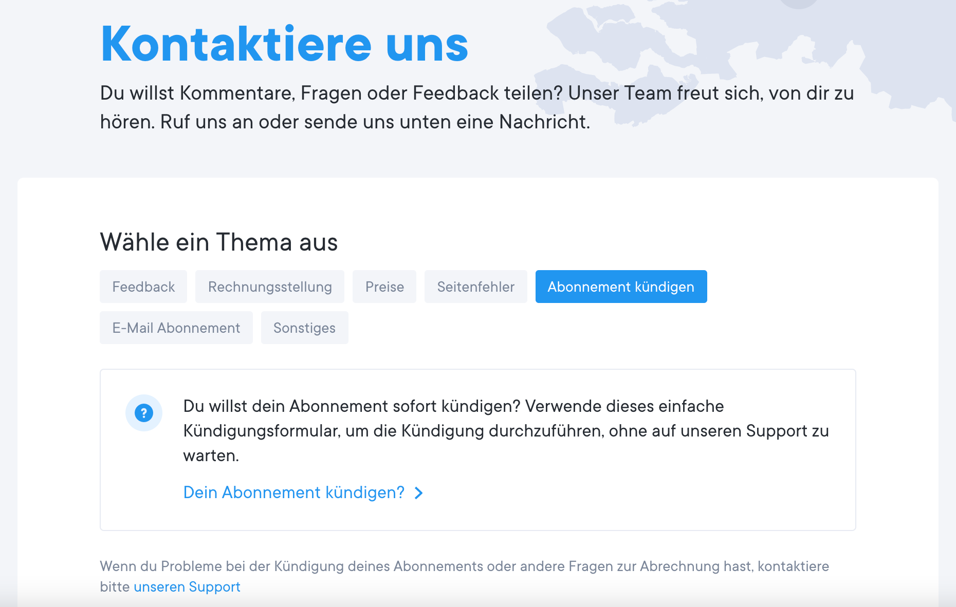 Wenn deine E-Mail-Adresse nicht gefunden werden kann, hilft es vielleicht, wenn du nach einer anderen E-Mail-Adresse suchst, mit der du dich möglicherweise angemeldet hast. Wenn das immer noch nicht funktioniert bzw. du keine Bestätigungs-E-Mail erhältst, dann versuche es mit den folgenden Schritten, um dein Abonnement über die App zu kündigen oder kontaktiere unser Team, das dir gerne helfen wird.