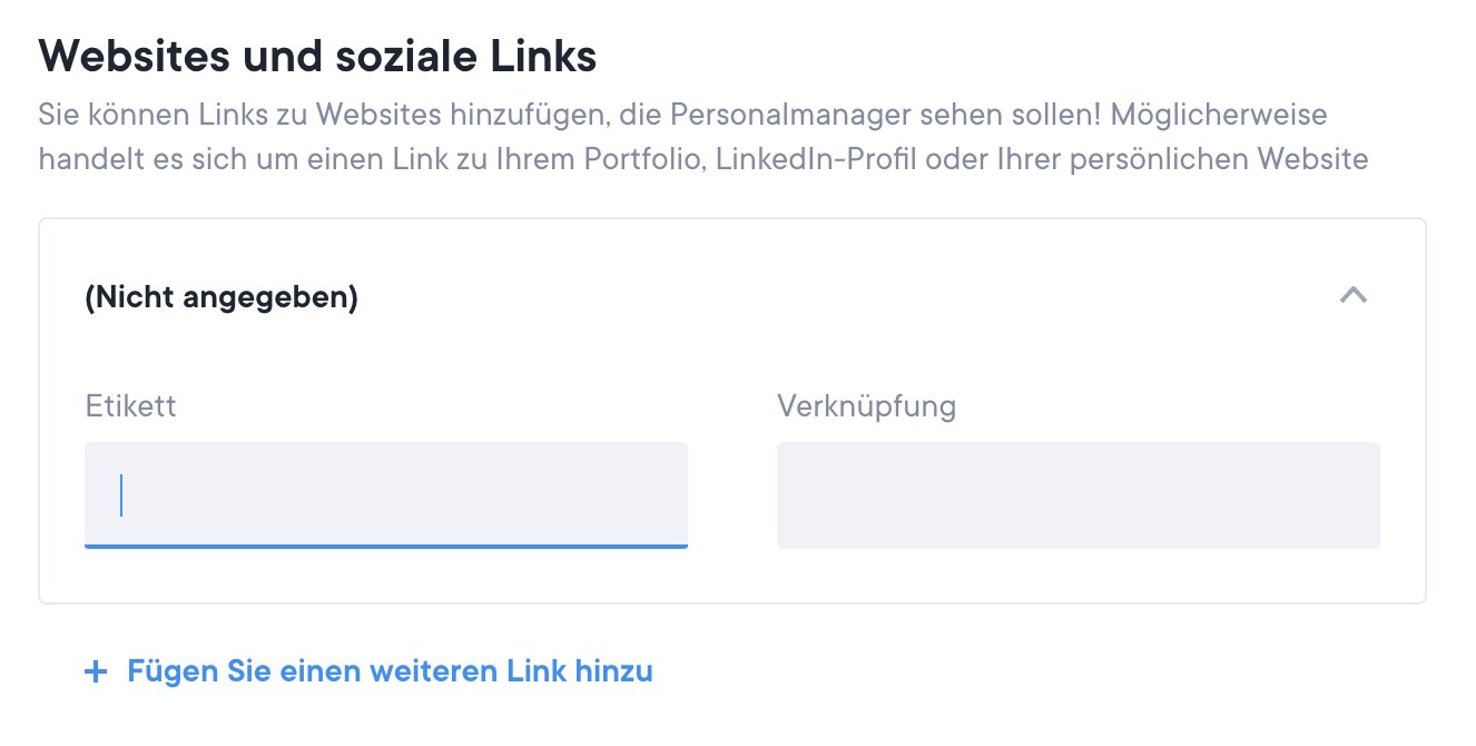 Links sind etwas Großartiges und tragen der Tatsache Rechnung, dass der Platz auf deinem Lebenslauf begrenzt ist. Füge auch zusätzliche Informationen mit einem Link zu deinen Sozialen Profilen, deiner persönlichen Website oder deinem Online-Portfolio hinzu.