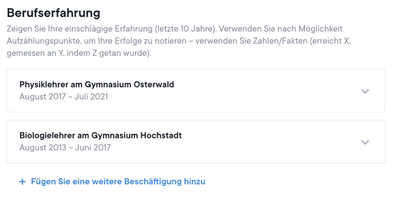 Schritt 5: Dein beruflicher Werdegang
