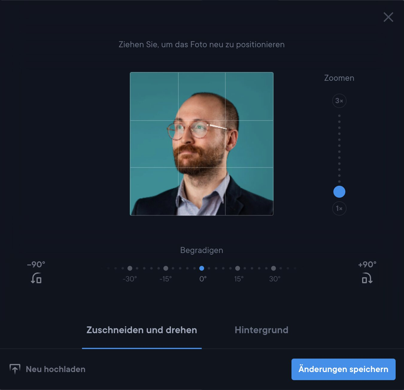 Foto: Wenn du ein professionelles Foto hast, dann lade es auch in diesem Abschnitt hoch. Beachte, dass einige der Vorlagen für Fotos vorgesehen sind und andere nicht.