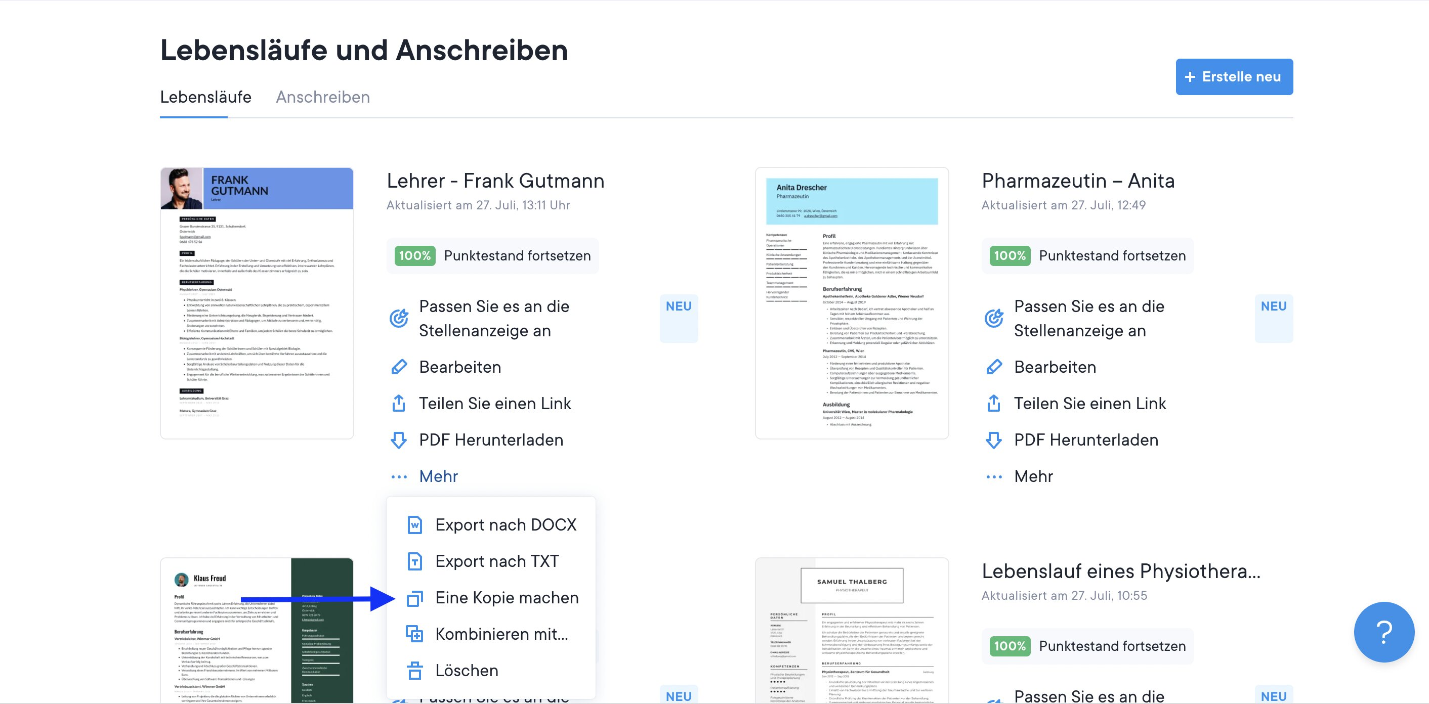 Wie dupliziere ich meinen Lebenslauf oder erstelle mehrere Versionen davon?